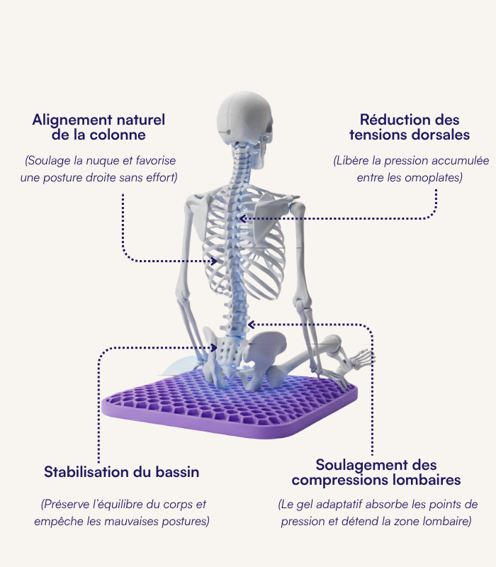 Oui, notre technologie de répartition biomécanique de la pression agit là où tous les coussins classiques échouent : elle élimine la sensation d'écrasement, protège vos nerfs et articulations, et donne un vrai répit à chaque séance d'assise prolongée.